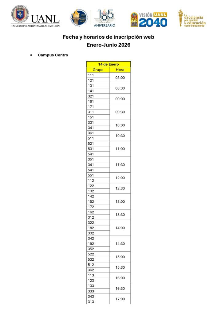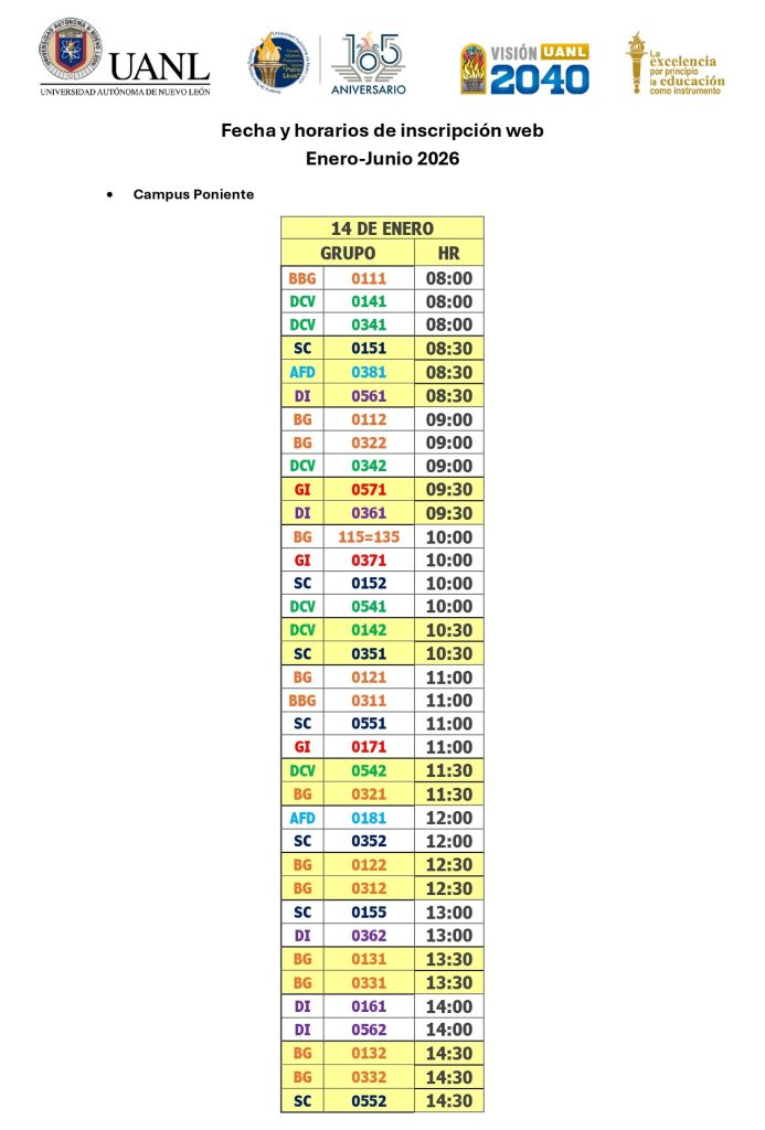 Puede revisarse la programación de la inscripción web extemporánea para estudiantes de reingreso de los campus Centro y Poniente para el próximo periodo académico. Campus Centro Para los y las estudiantes que no pudieron completar su inscripción en línea, deben acudir el viernes 16 de enero de 2026 al departamento …